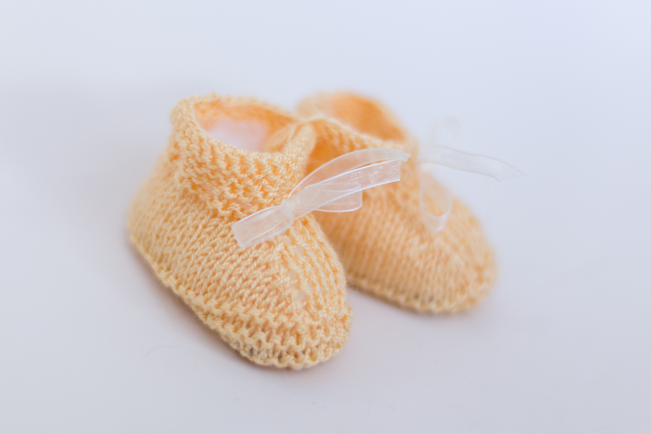 Talla 0 – 3 meses. Tejida en lana suave a mano con aguja de punto con lazo organza estrecho.